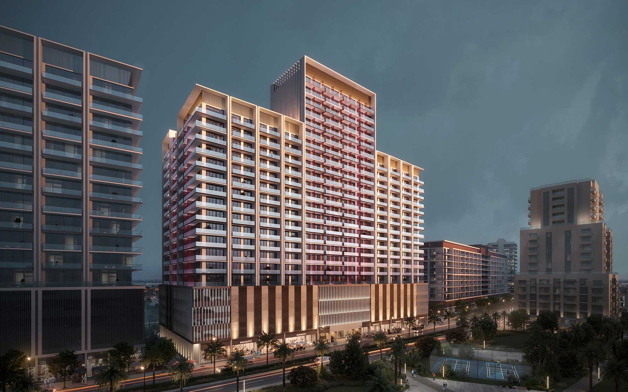 Collaborating with luxury brands like Bugatti, Mercedes-Benz, and Jacob & Co., Binghatti offers branded residences that combine global luxury with modern living.